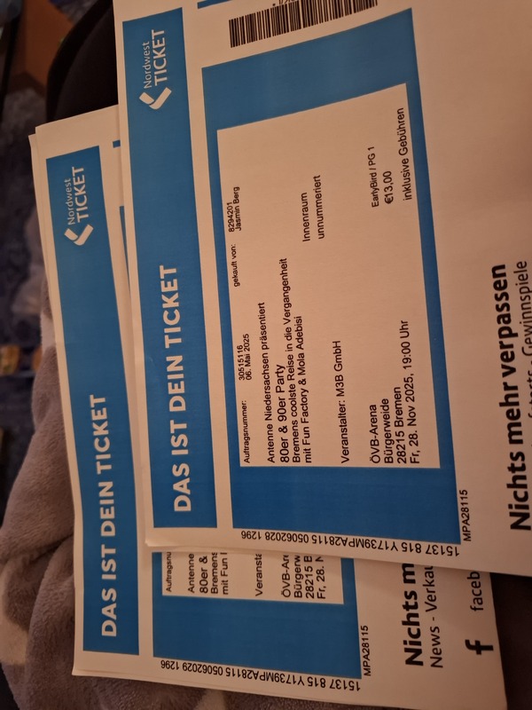 Biete für Fr, 28.11. 2025 um 19 Uhr 2 Tickets für ÖVB Arena Bremen