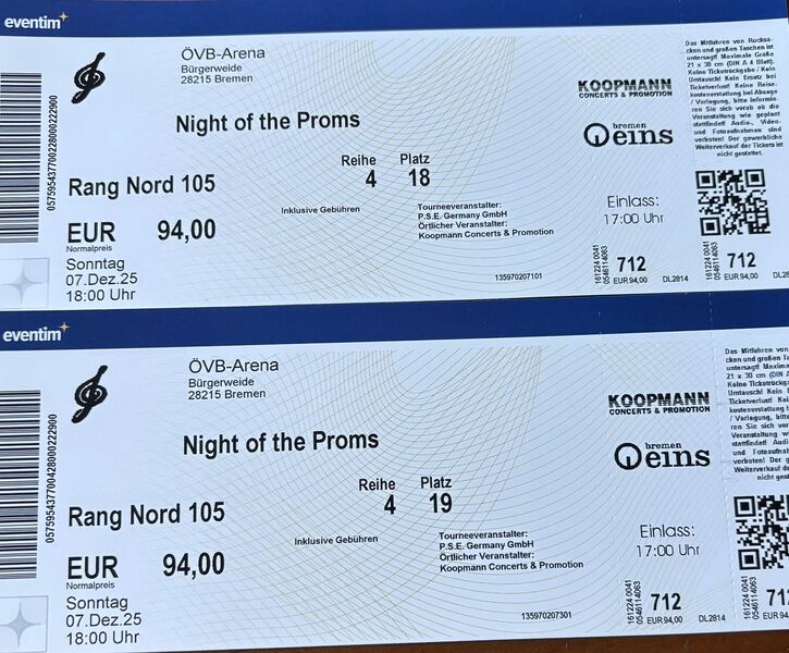 - 2 Tickets Night of the Proms 07.12.25 Bremen