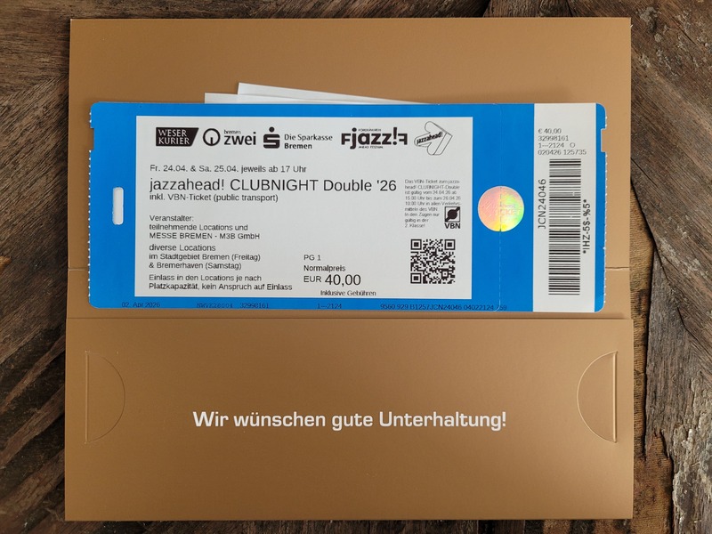 ich habe mir für das kommende jazzahead! Festival eine falsche Karte gekauft. Sie gilt für Bremen am Freitag, den 24.04.26 in diversen Locations und für Bremerhaven am Samstag, den 25.04.26 ebenso in diversen Locations.