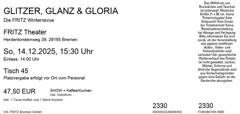 - GLITZER, GLANZ & GLORIA im Fritz-Theater am 14Dez