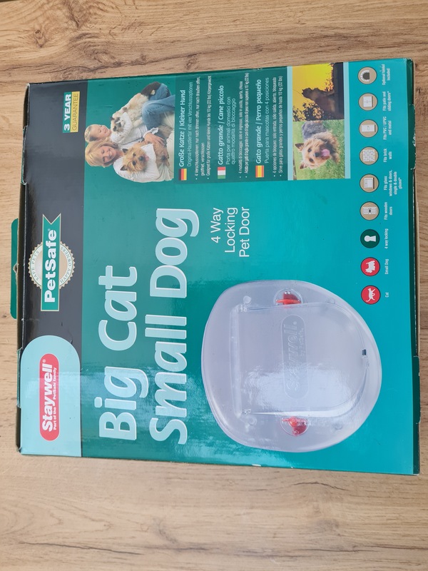 Katzen/Hundetür Stywell/Petsafe Katzentür, 292 x 292 mm , für alle Türen, Fenster oder Wände geeignet, 4fache Wegabsicherung, mit Einbauanleitung und Schrauben, unbenutzt, Bremen-Horn, 12,00 €uro .