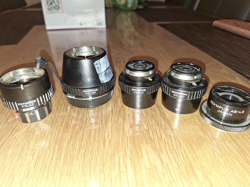Biete im Auftrag diverse Adapter für Olympus an. Es handelt sich um 1x A10-L2, 1x A10-M2, 2x AS-L10 und 1x AE-L2. Kann als Konvolut oder einzeln erworben werden.