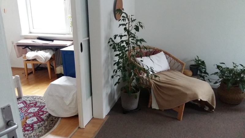 In der Wohnung gibt es eine schöne Küche, in der man gut zu zweit und dritt sitzen kann und ein Badezimmer mit Badewanne. Leider gibt es keinen Balkon:(, aber eine Parzelle wäre eventuell mitnutzbar.