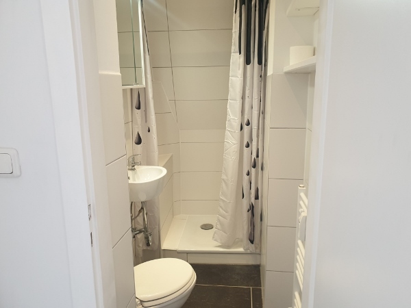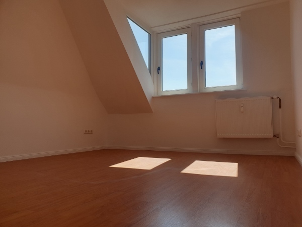 Die Vier-Zimmerwohnung 100 m² (komplett neu renoviert), liegt im Dachgeschoss, eines Mehrfamilienhauses, auf zwei Etagen. Die Dachgeschosswohnung hat drei Schlafzimmer (sind alle frei), ein Gemeinschaftswohnzimmer, mit Küche, zwei Dachterrassen (12 und 6 m²) und ein Badezimmer. Ein Gemeinschaftsgarten ist vorhanden und kann mit benutzt werden. Eine Kellerabstellbox ist inbegriffen.