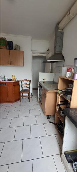 The apartment has 5 rooms, toilet, bathroom, kitchen with stove, fridge, furniture, hallway and a huge balcony.