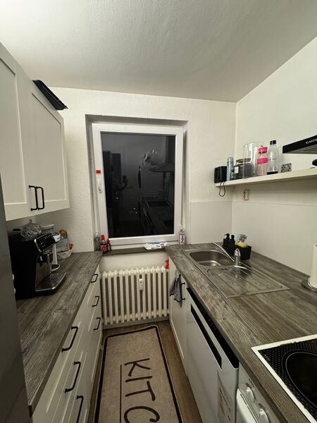Einbauküche mit Herd und Backofen vorhanden. Kühlschrank und Geschirrspülmaschine gehören dem Mieter.