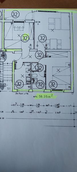 Die gut geschnittene Wohnung hat eine Wohnfläche von ca. 60 m² , hat 3 Zimmer, Wannenbad mit Fenster, eine Einbauküche mit Platz für eine Waschmaschine, Loggia (Südseite), Kellerraum. Sie befindet sich im 3. OG. eines gepflegten 8-Parteienhauses.