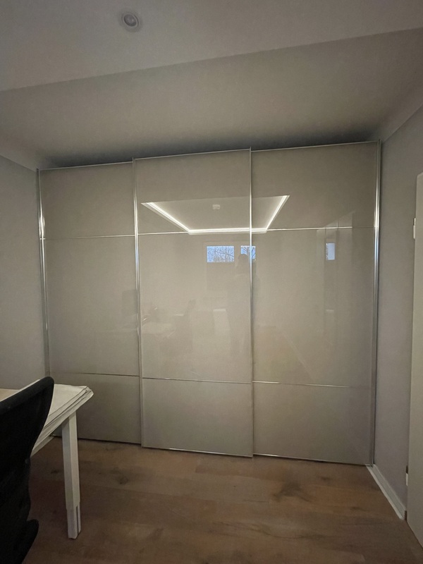 Im Schlafzimmer wurde ein hochqualitativer, hochpreisiger Kleiderschrank mit Innenbeleuchtung (siehe Fotos) eingebaut. Dieser füllt bis auf wenige Zentimeter die ganze Wand.