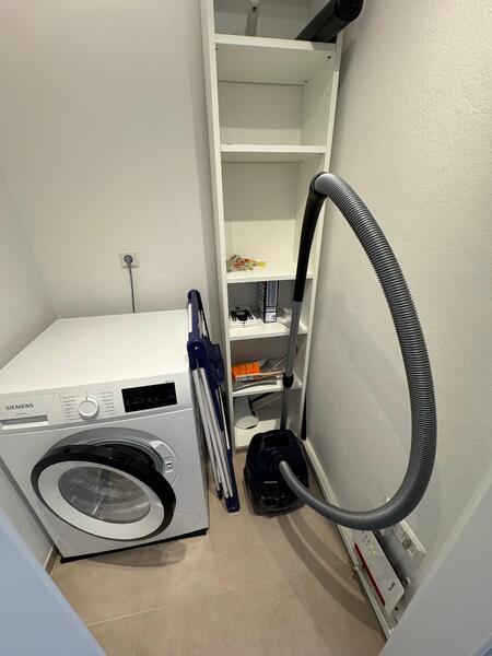 Abstellraum: Waschmaschine, Regal, Deckenleuchte, Staubsauger